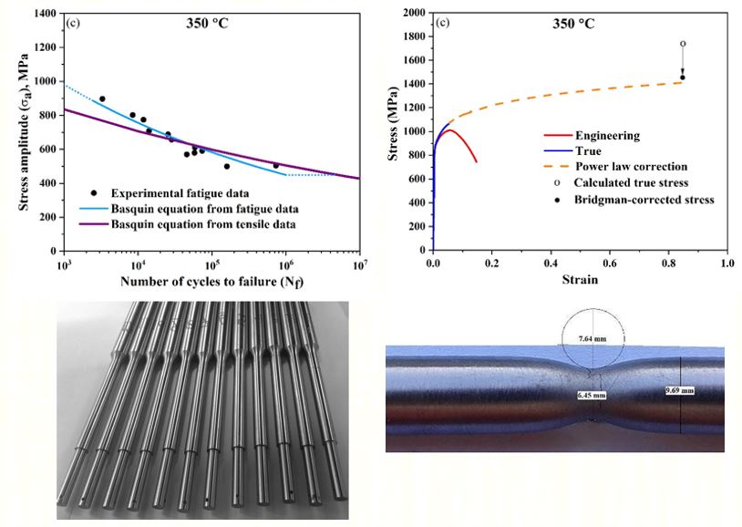 - Corrected true stress and strain at the fracture point were calculated